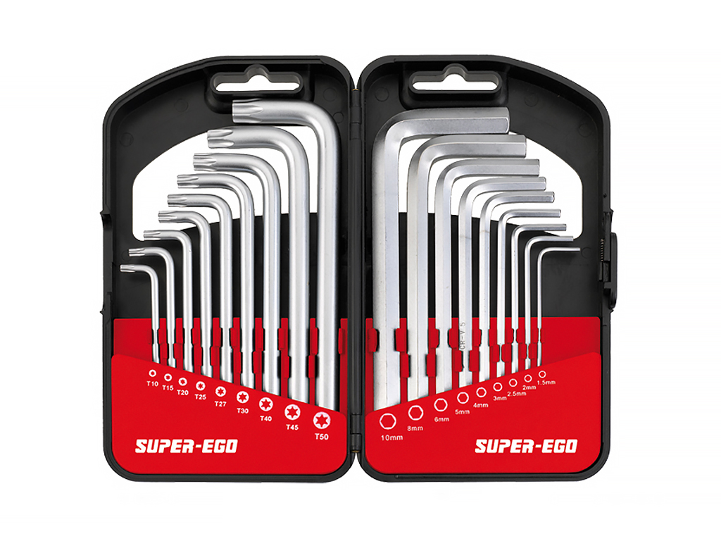 - 9 ключей Torx(с защитой от неумелого обращения): D 10 - 15 - 20 - 25 - 27 - 30 - 40 - 45 - 50 мм.
