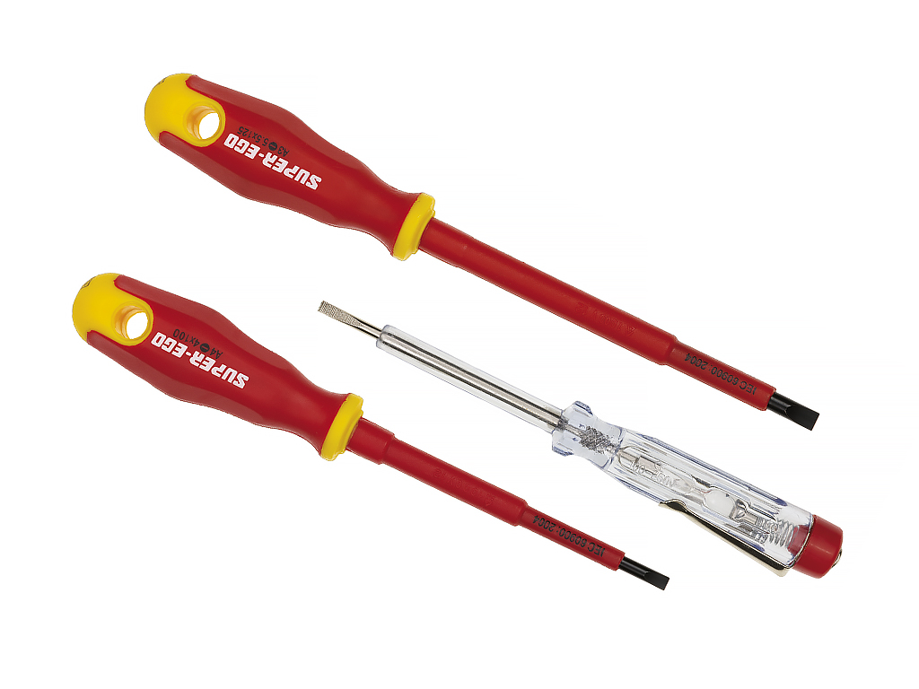 - Набор диэлектрических отверток, 2 шт и тестер в блистере.